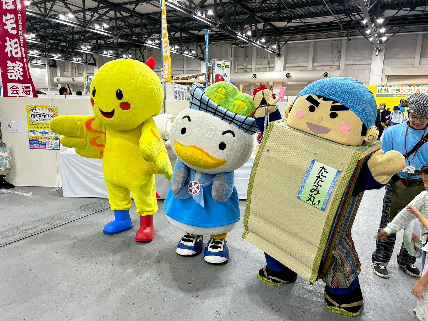 技能グランプリ&フェスタ2025 お知らせ 2025.10.27 令和7年10月25日(土)・26日(日)の2日間、 神戸ポートアイランド国際展示場2号館にて開催された 「技能グランプリ&フェスタ」に参加しました! 当日は、たくさんの方々に体験ブースや出展ブースへお越しいただき、 大盛況のうちに終了いたしました。 ご来場くださった皆さま、誠にありがとうございました。 また、たたみ丸も応援に駆けつけ、 会場ではマスコットキャラクターたちが大集合! 子どもから大人まで笑顔あふれるイベントとなりました✨